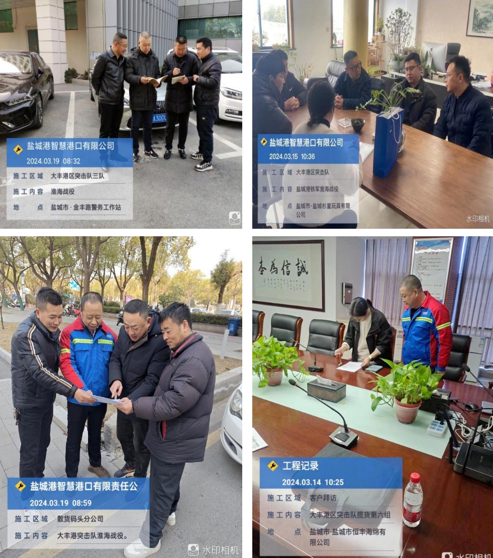 大豐港區突擊隊采用“早布置、晚總結”工作模式,全方位開展業務拓展。在走訪過程中,隊員們發揚“四敢”精神和“鐵軍”精神,緊扣“算賬式攬貨、定制化服務、分星級定價、一季一走訪、修正式創新、增效益共贏”總體要求,宣傳鹽城港優勢資源,現場解答客戶難題,記錄需研究的問題。