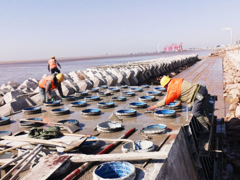 今年以來,集團工程部積極踐行鹽城港集團創新發展理念,積極響應集團號召,自加壓力,主動擔當,圍繞沿海港口設施建設新技術推廣應用,重點針對軟土地基處理、海洋工程施工、鹽堿灘地綠化、碼頭建(構)筑物飾面工程等領域,抓好工程技術創新團隊建設工作。目前已牽頭組織集團工程部、建設集團、中交一航院項目組等部門和單位相關技術人員,提出了“鹽城港集團黃海建案”創新團隊組建方案,并著手開展軟土地基處理“強夯排水法”和“高真空擊密法”比較研究、“大體積混凝土壩體乘潮施工技術”等課題開發,其中“大體積混凝土壩體乘潮施工技術”在“射陽港5萬噸航道北導堤先導試驗段”項目中成功應用,經過對工程實體檢測,各項技術參數均滿足相關規范要求。目前,黃海建案創新團隊正在對該技術進行總結論證,計劃于近期形成“土木工程類工法”方案,可望在年內完成省級工法申報工作,力爭為鹽城港集團科技創新工作打頭陣、開新局。