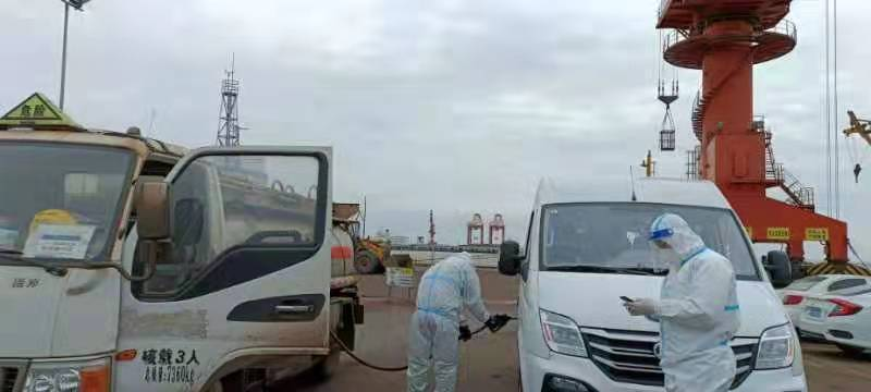 初春的早晨,寒風依然刺骨,成品油公司防疫供油專車卻已早早地等候在大豐港二期碼頭。“師傅,您好,成品油公司防疫供油專車申請進碼頭供油,這是‘雙碼’、核酸檢測結果......”這是成品油公司供油專車進出港口的景象。