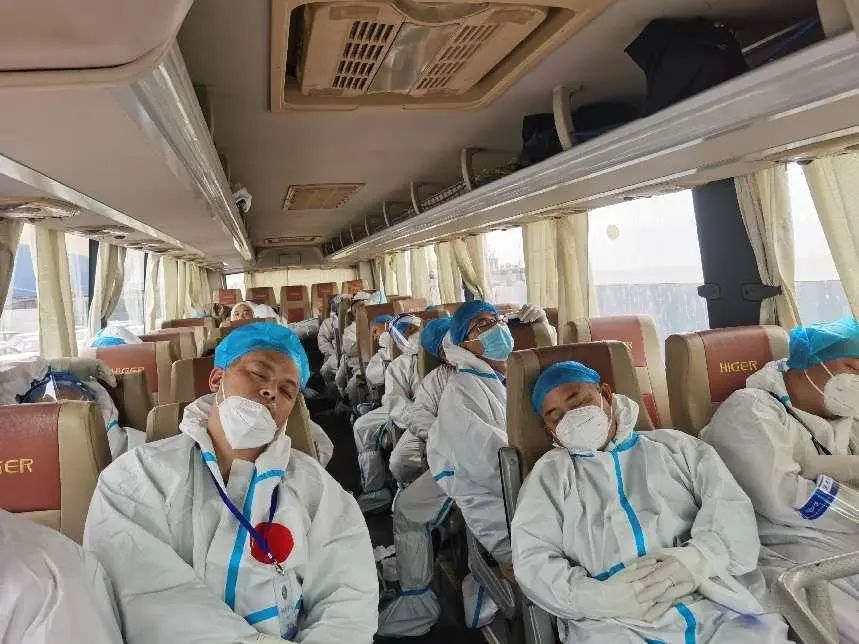 面對30小時連續(xù)作業(yè),他們傾力付出,勇于奉獻。困了累了只能在臨時休息點(中巴車)稍作休息。