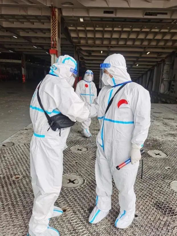因為外貿(mào)作業(yè)后要經(jīng)過14天的閉環(huán)隔離管理,作業(yè)前團隊中有人剃光了頭發(fā)。他們用行動,擦亮奉獻底色,書寫奉獻篇章。