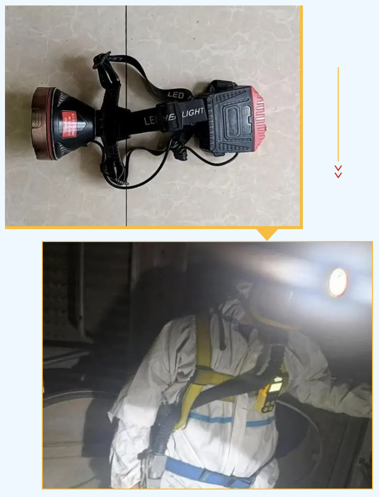 在筒倉身處的昏暗區域,大大增加了作業難度和風險。頭戴燈恰似頭頂的“小太陽”,精準照亮每個細節,解放作業人員的雙手,讓他們在狹小空間里更專注于清點貨物,排查維修設備故障,助力生產作業安全高效進行。