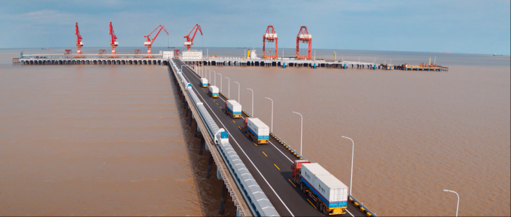 裝載集裝箱的貨車來往穿梭