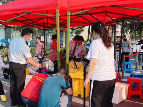 為筑牢疫情防控“最后一道關”,安全員嚴格執行測溫、查碼、加強外來人員出入管理,不放過每個環節,堅決防止疫情輸入,積極配合社區工作,他們安裝隔離帶,搭建遮陽棚,張貼一米線,在核酸檢測現場有序組織業主排隊進行核酸采樣、測量體溫、協助行動不便的老人順利檢測采樣,保障業主安全。